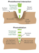 Druhá metoda - fotoablace - spočívá v přímém rozbíjení molekulárních nebo atomárních vazeb, které drží materiál pohromadě, spíše než