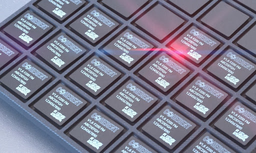Laserové popisovače PowerLine F 10 QS pro značení na polovodičových integrovaných obvodech a dalších součástkách citlivých na teplo pomocí zeleného laseru 532 nm, nanosekundové délky pulzu a vysoce kvalitní skenovací optiky.
