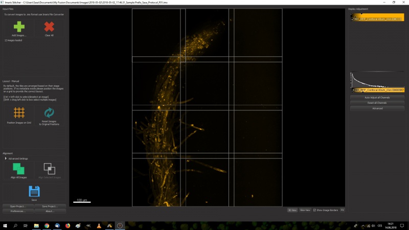 Jelikož je konfokální mikroskop Andor Dragonfly velmi rychlý a flexibilní, lze nasnímat v krátkém čase několik zorných polí o vysoké kvalitě a penetrační hloubce. Tato zorná pole spojí ihned po snímání software FUSION a výsledkem může být např. velká část kořene nasnímaná kompletně ve velmi dobrém rozlišení. Další výhodou technologie Borealis je vysoká uniformita osvětlení velkého zorného pole - to umožňuje stitching bez velkých překryvů a také kvantitativní měření signálu v rámci zorného pole.