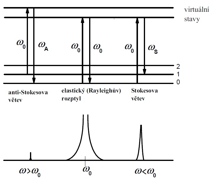 Spektrum Ramanova rozptylu (Stokesova a anti-Stokesova větev)