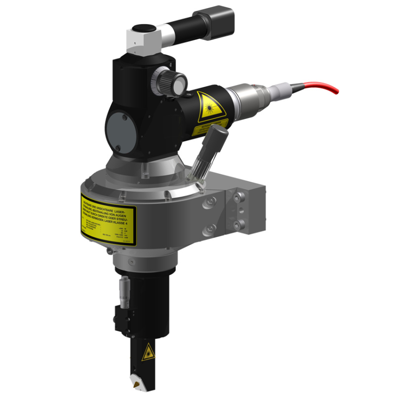 Vysokorychlostní procesní hlava LFS/QFS s FLBK SC pro laserové rýhování včetně optiky pro přenos paprsku, trysky na procesní plyn a řídicího softwaru. Určeno k rýhování ojnic spalovacích motorů před hydraulickým praskáním.