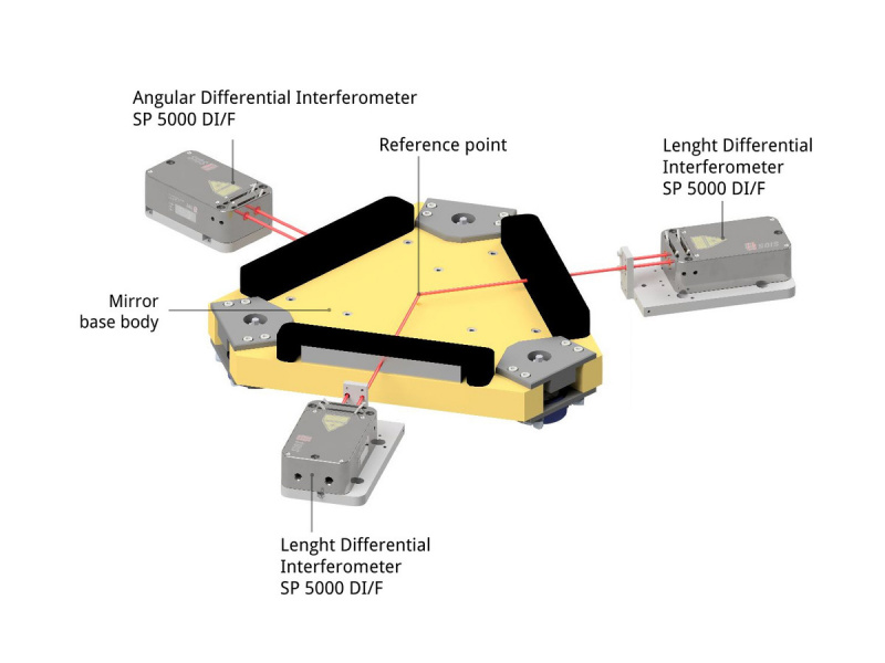 Měřený objekt je umístěn přímo na pohyblivém zrcadle. Poloha a natočení zrcadla jsou doměřovány interferometricky.