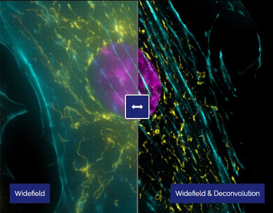 Widefield je ideální pro velmi tenké vzorky, kvasinky nebo aplikace, které vyžadují vysoký výkon laseru, jako je SMLM. Pro zvýšení poměru signálu k šumu a pro větší rozlišení lze rovněž použít integrovanou dekonvoluci urychlenou přes GPU v kombinaci se všemi modalitami: konfokálním snímáním, widefield i TIRF.