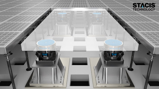 Pokud se v podlaze vyskytují nízkofrekvenční vibrace od 0,5 Hz do 100 Hz, může pomoci systém STACIS® Quiet Island společnosti TMC. STACIS Quiet Island se skládá z izolátorů STACIS, které podpírají na zakázku vyrobenou 4" silnou ocelovou plošinu s rozměry zvolenými pro konkrétní aplikaci. Izolátory STACIS zajišťují 87-96% snížení hluku v podlaze při frekvenci 1 Hz a více než 99% snížení hluku při frekvenci 2 Hz.