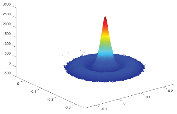 Obrázek 3: Profil paprsku ARM na pracovním povrchu (1,5 kW střed a 2,5 kW prstenec) s laserem zaostřeným 1,5 mm nad pracovním povrchem.