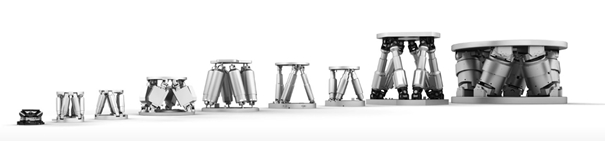 Hexapody a SpaceFab platformy jsou dostupné v různých provedeních jako jsou: