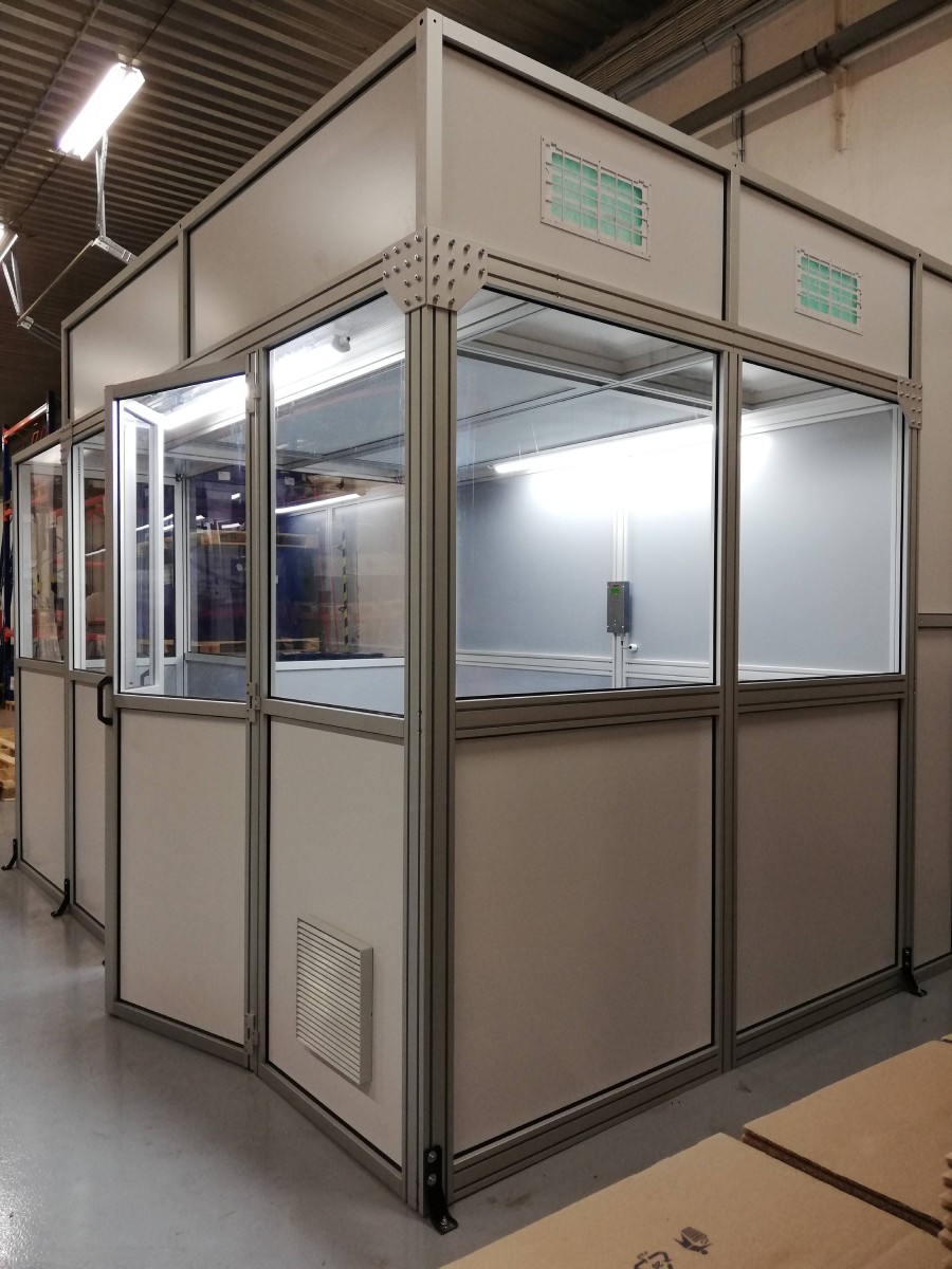 V červnu 2020 jsme realizovali pro společnost Herbacos Recordati, s.r.o. montáž čisté buňky. Jedná se o uzavřenou konstrukci s malou přechodovou komorou, kdy je přívod vzduchu řešen pomocí laminárních flowmodulů SuSi od Spetec, které zajišťují filtraci vzduchu až na čistotu ISO 5.