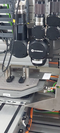 Laser v aplikační laboratoři Coherent je vybaven procesní hlavou pohyblivou v ose Z, pohyb v osách X a Y pak zajišťuje pohyb pracovního stolu.Celý proces kalení byl monitorován inline kamerou. Dosažení a udržení kalicí teploty bylo kontrolováno integrovaným pyrometrem se zpětnou vazbou - pyrometr může přímo upravovat výkon laserového zdroje.