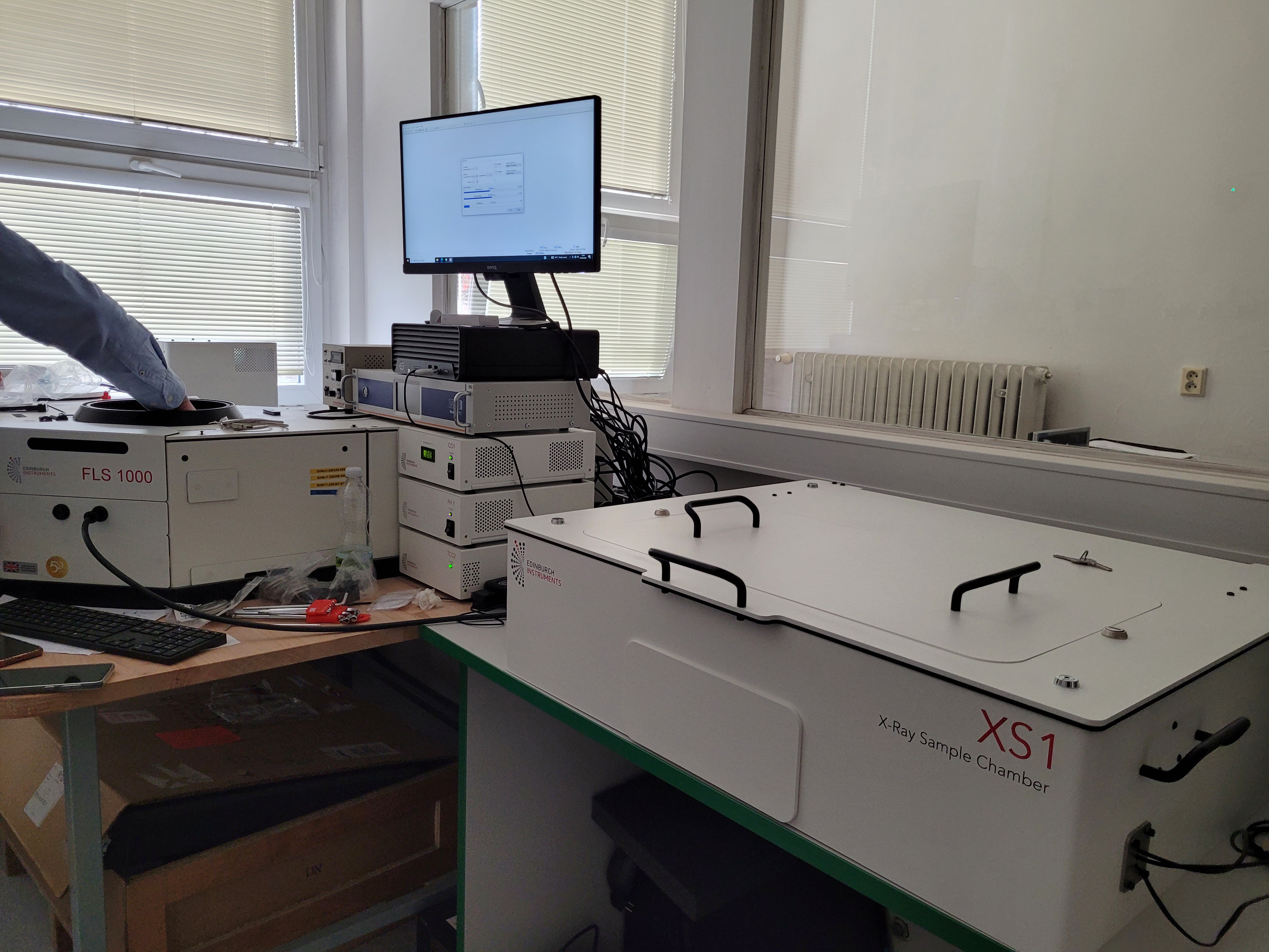 Pro toto zadání jsme zvolili modul N-XS1-CW (Edinburgh Instruments) pro měření rentgenem buzené luminiscence v ustáleném stavu. Emisní signál je přiveden do spektrometru pomocí kapalinového světlovodu (modul používá detekční systém spektrometru). Měření se provádí pomocí metody čítání jednotlivých fotonů. Součástí je držák kyvety, držák tenkých filmů a držák práškových vzorků. Sestava může být v budoucnu rozšířena o pulzní zdroj rentgenového záření pro časově rozlišená měření.