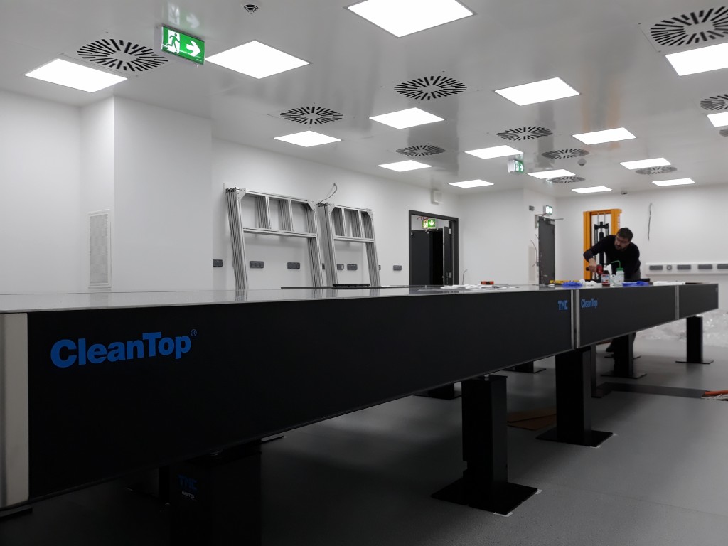 Na pracoviště jsme dodali optické stoly TMC, které se vyznačují nejlepší rovinností pracovní plochy. Sestava je dlouhá přes 8 metrů a tak tato vlastnost získává na důležitosti. Uživateli usnadňuje sestavování experimentů a justáž optické dráhy.