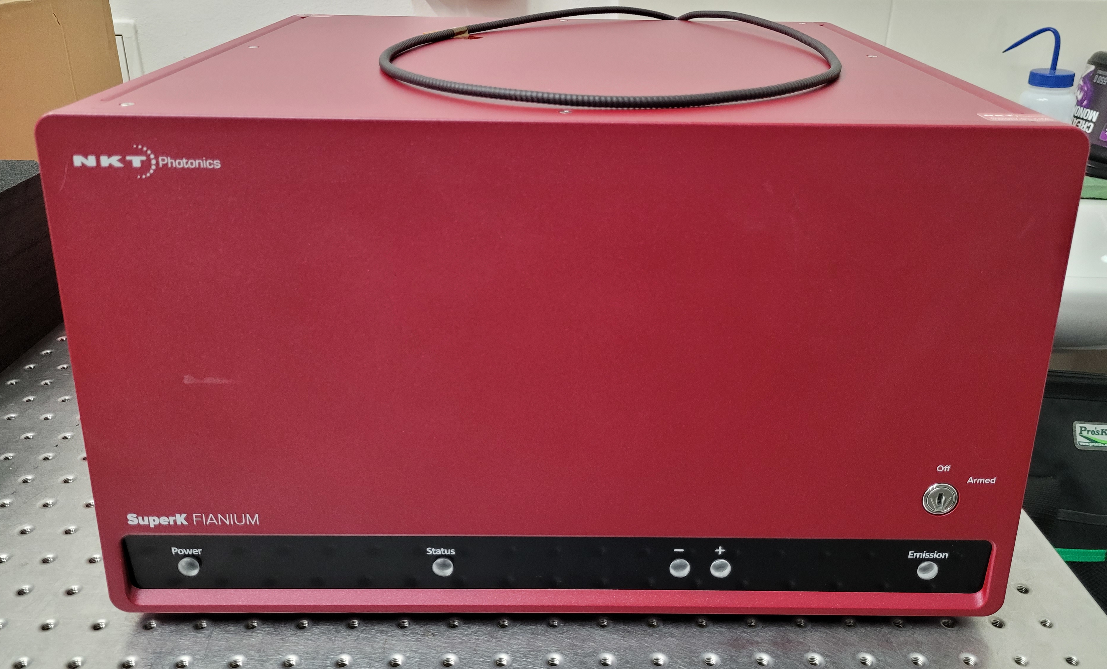 - Superkontinuální laser SuperK Fianium FIU-15 (415 – 2400 nm, celkový výkon >5,5 W, VIS výkon >1,5 W)