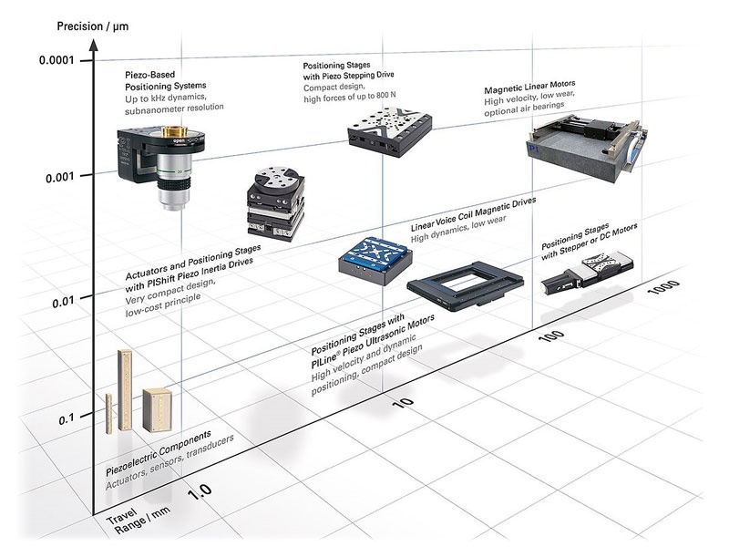 Rozsah pohybu od 13 po 305 mm, nosnost 1 až 100 kg, submikronová přesnost