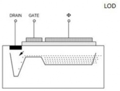 LOD = Lateral Overflow Drain (Laterální odvod přetečení) – odtokový kanál se nachází vedle sloupce pixelů, čímž se zmenšuje aktivní plocha čipu