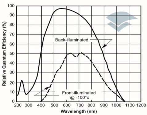 Digital Camera Fundamentals - AndorVýraz Kvantová účinost (nebo také Quantum efficiency, QE) označuje poměr počtu dopadajících fotonů na senzor a počtu uvolněných elektronů v depleční vrstvě senzoru. Hodnota je závislá na vlnové délce dopadajícího světla. Ve vztahu k architektuře senzoru je velmi důležitá pozice vrstvy citlivé na světlo, ve které dochází k uvolnění náboje (tzv. depleční vrstva):