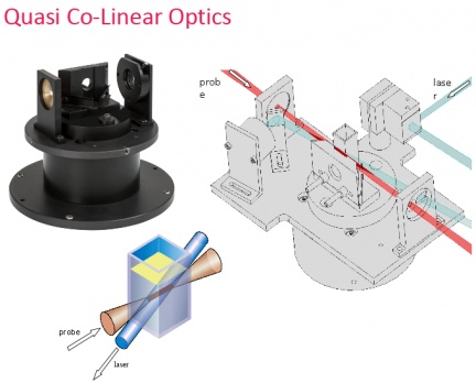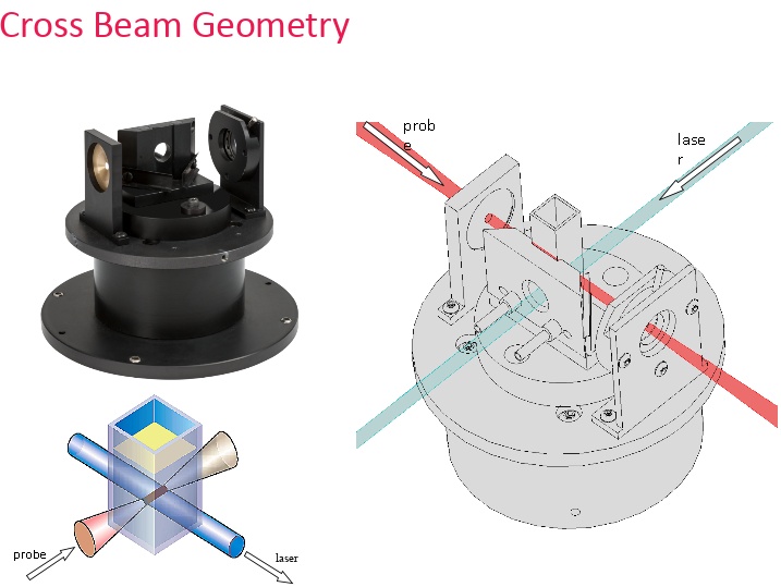 - Duální vzorková komora umožňující měnit geometrii excitačního a sondovacího svazku (kolmé, kvazi-kolineární a difúzní uspořádání)