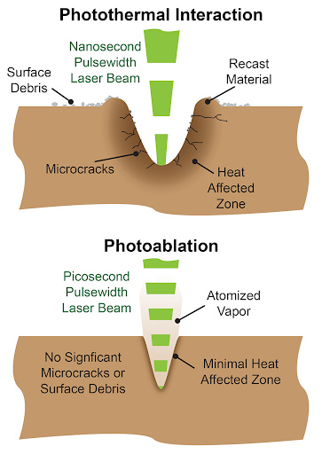 Laserová ablace přináší podobné výhody v mnoha aplikacích, ale tato technika funguje pomocí celé řady metod. Ty závisí na typu laseru, samotném materiálu a požadavcích úlohy. Obecně však lze říci, že všechny ablační procesy fungují na základě fototermické nebo fotoablační interakce. Není neobvyklé, že v rámci jednoho procesu dochází ke kombinaci obou.