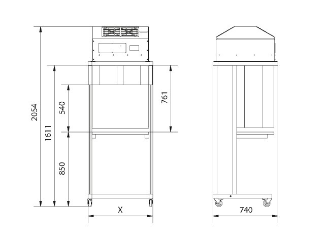- Možnost snadné výměny filtru zespodu (uvnitř čistého prostoru) přes kazetový systém obsahující hlavní filtr. V případě potřeby je stále možné použít konvenční způsob výměny filtru shora (mimo čistou místnost).