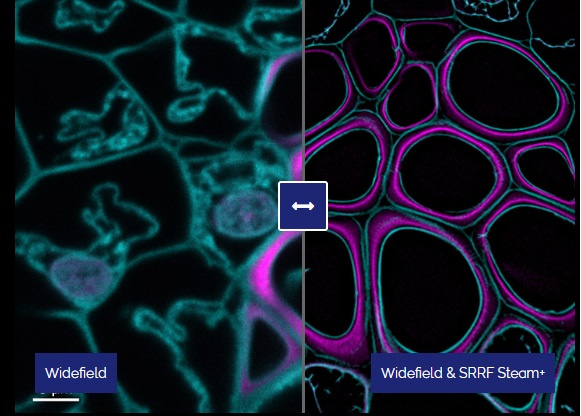 Widefield je ideální pro velmi tenké vzorky, kvasinky nebo aplikace, které vyžadují vysoký výkon laseru, jako je SMLM. Pro zvýšení poměru signálu k šumu a pro větší rozlišení lze rovněž použít integrovanou dekonvoluci urychlenou přes GPU v kombinaci se všemi modalitami: konfokálním snímáním, widefield i TIRF.