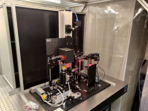 Další zákaznickou výzvu představovalo řešení pro materiálový výzkum tenkých vrstev chalkogenidů, jejichž potenciál v rámci fotoniky zkoumají na Univerzitě v Pardubicích. Hlavní inovací projektu bylo zvýšení kapacity pomocí přechod do modré oblasti spektra, a to za použití vláknových laserů. Naše řešení spočívalo v mikroskopickém systému pro pump & probe měření dynamiky fázových změn v materiálu se dvěmi detekčními větvemi a mikroskopickou zobrazovací částí.