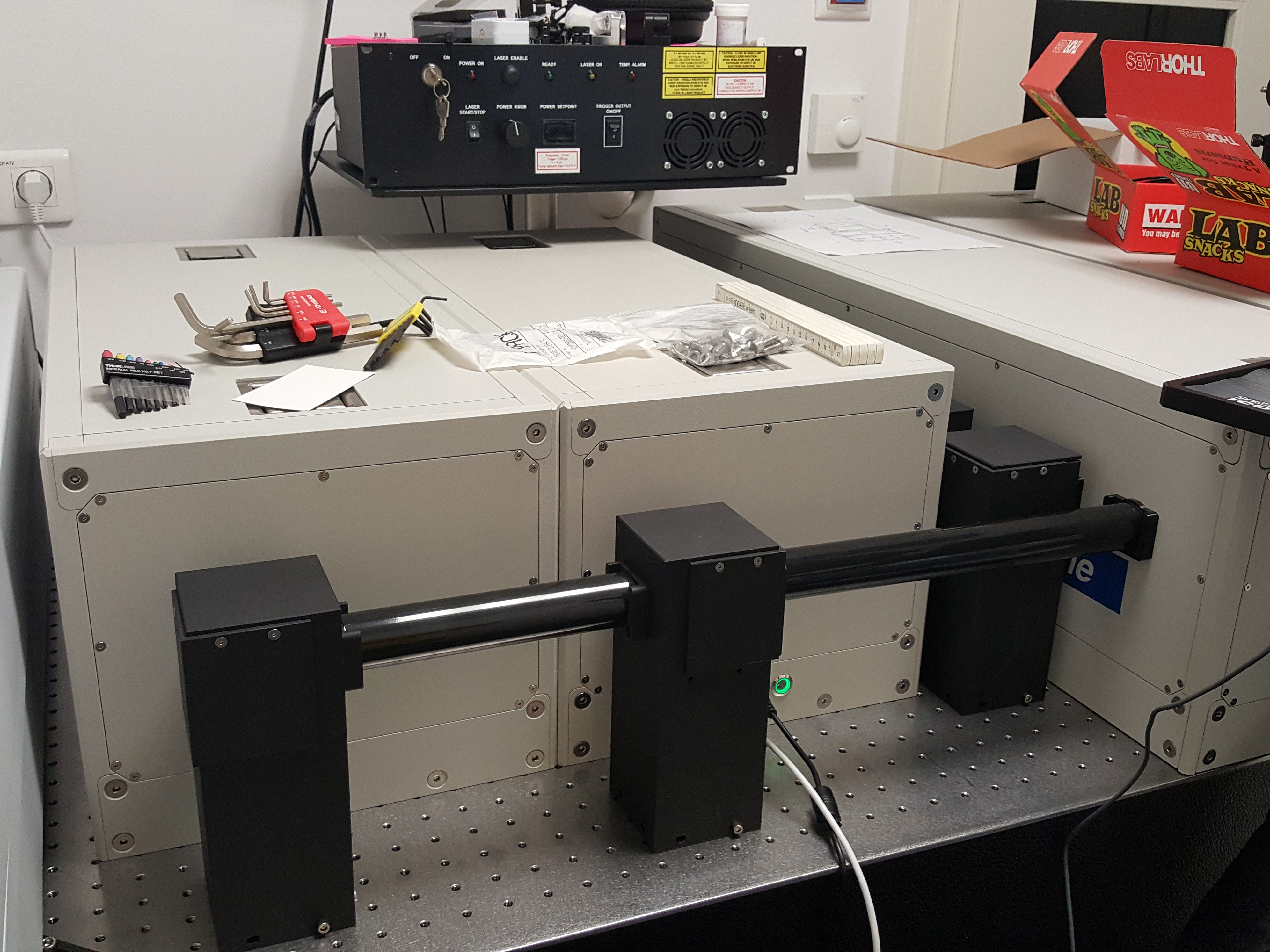 Zadáním klienta bylo rozšíření nanosekundového TA spektrometru EOS (instalovaný v roce 2017) na femtosekundový spektrometr. Po upgradu musel spektrometr dokázat měřit přechodnou absorpci minimálně od 360 nm do 1600 nm a dosáhnout femtosekundového časového rozlišení. Kromě kapalných vzorků v kyvetách musel spektrometr umožnit také měření transparentních a netransparentních pevnolátkových vzorků.